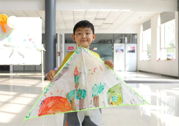 活動現場,為孩子們分發了空白風箏、顏料和畫筆等材料。孩子們腦洞大開,發揮想象力在風箏上設計他們的涂鴉,與家長一起手繪炫彩的風箏,隨著筆下色彩漸豐,一個個色彩鮮明、栩栩如生的風箏作品躍然而生。